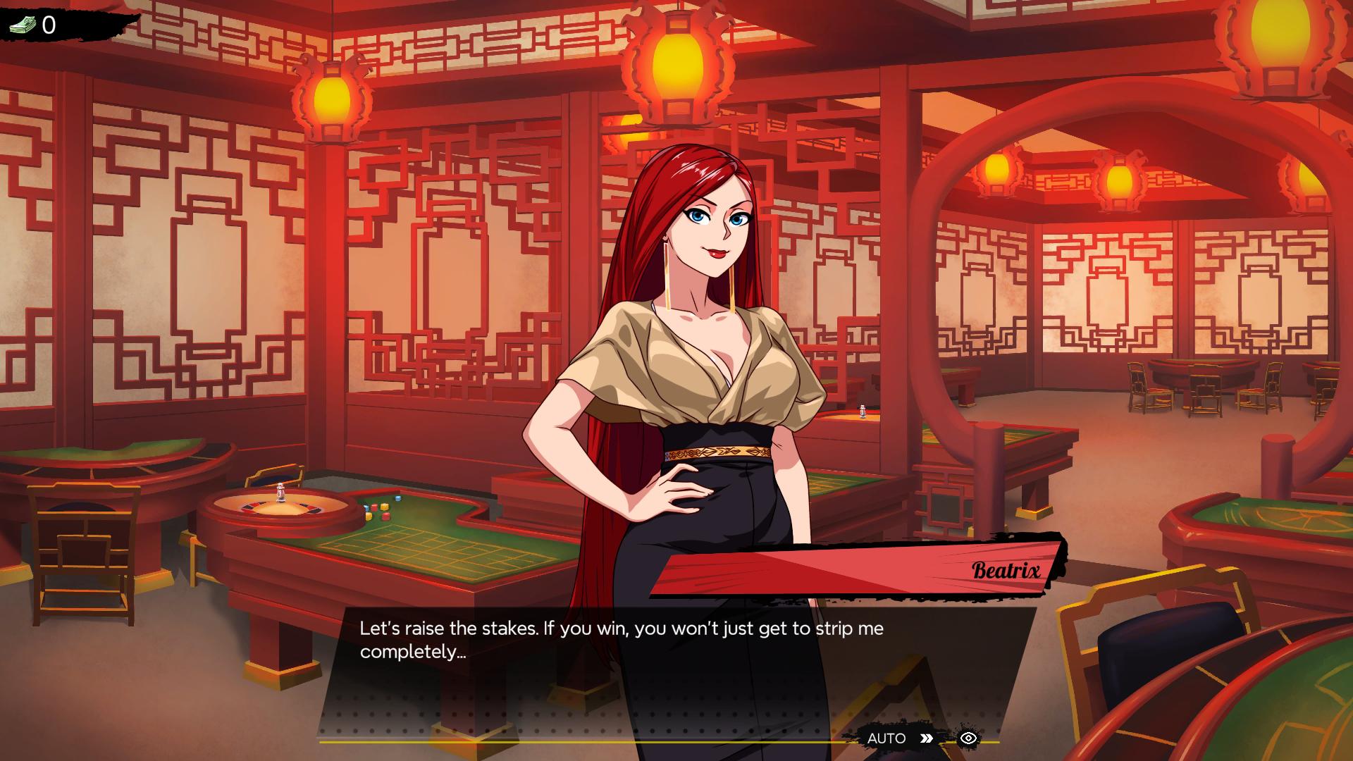 I was initially going to be a bit disappointed, as the start makes it seem like a typical "casino" style in which you just use money to buy off clothes, but was impressed to see there was a way passed that and it wasn't a game over but unlocked a new opponent. Which IS the strip game stakes I actually want!