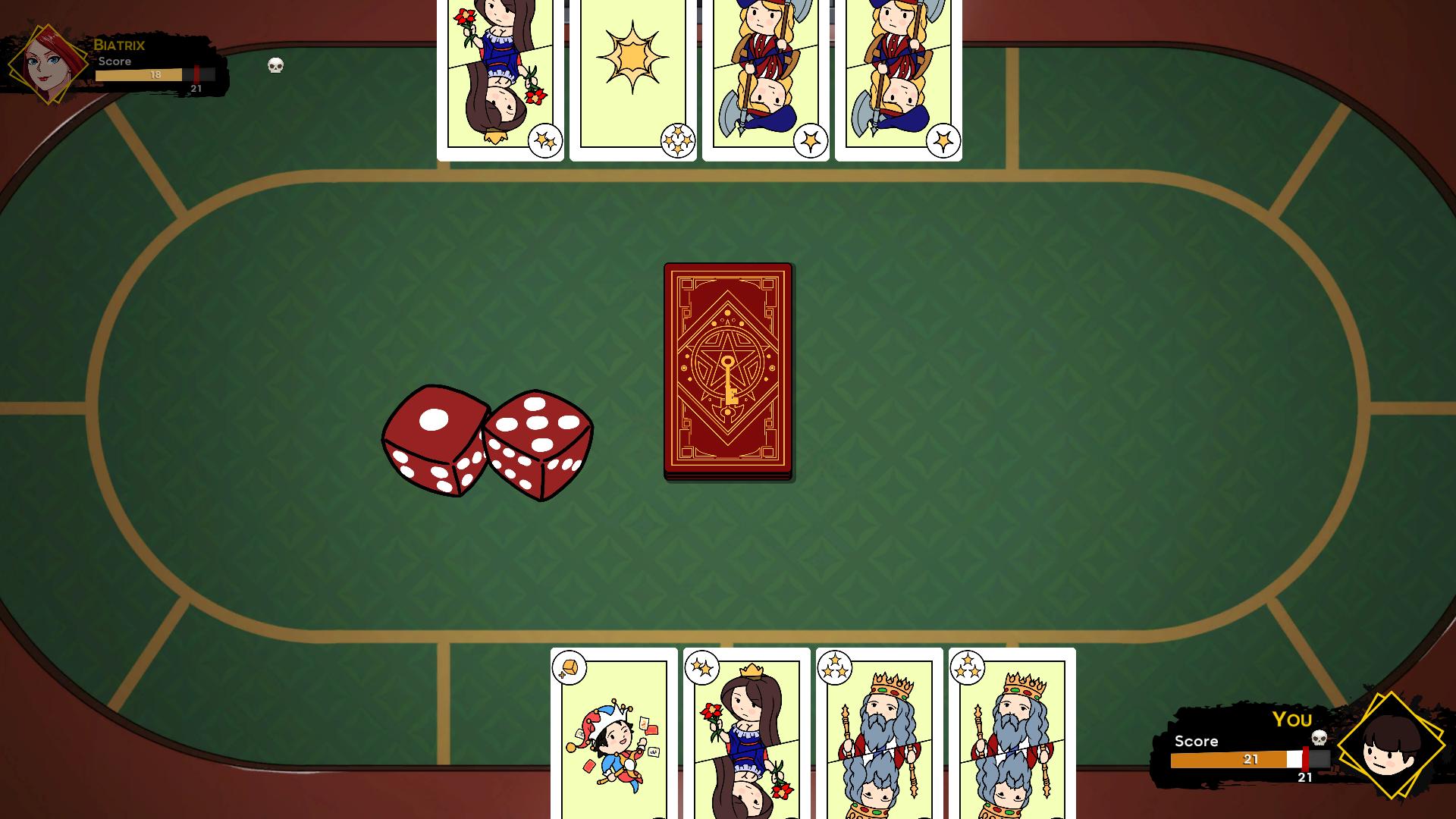 If you have fewer points, there’s no real reason to stop — you just keep risking it until the end. If you have more, that’s when an actual choice appears: secure your result or let your opponent try to overshoot.